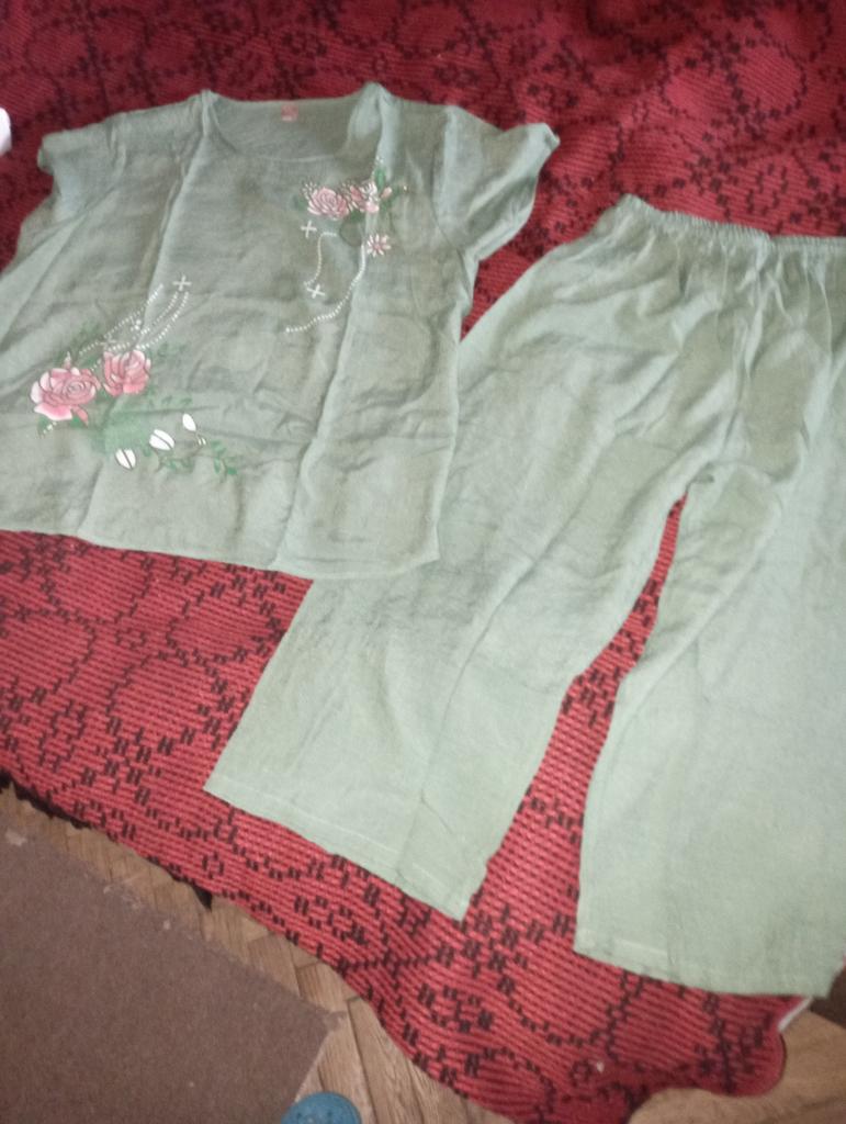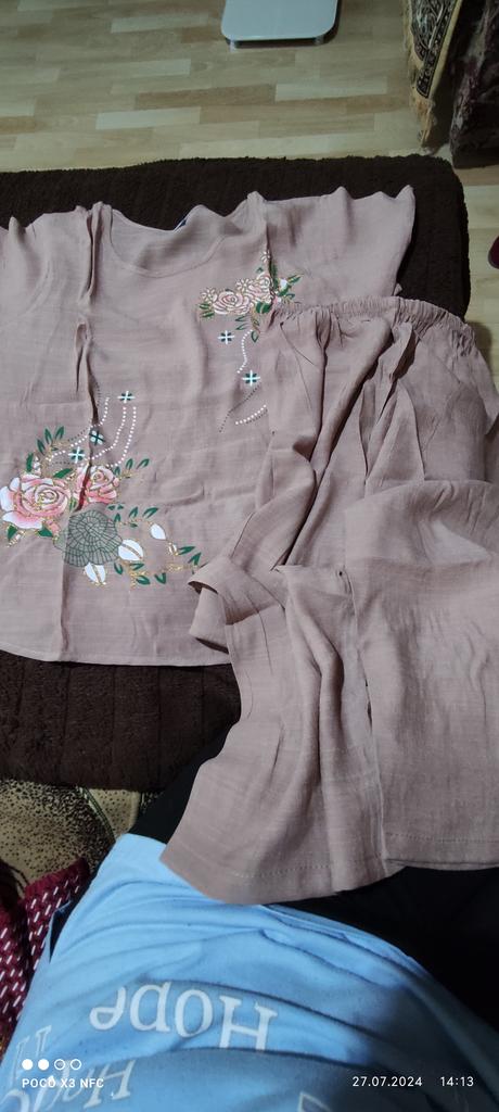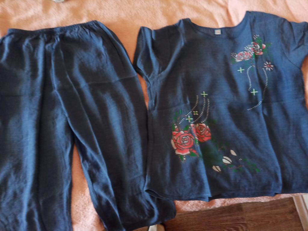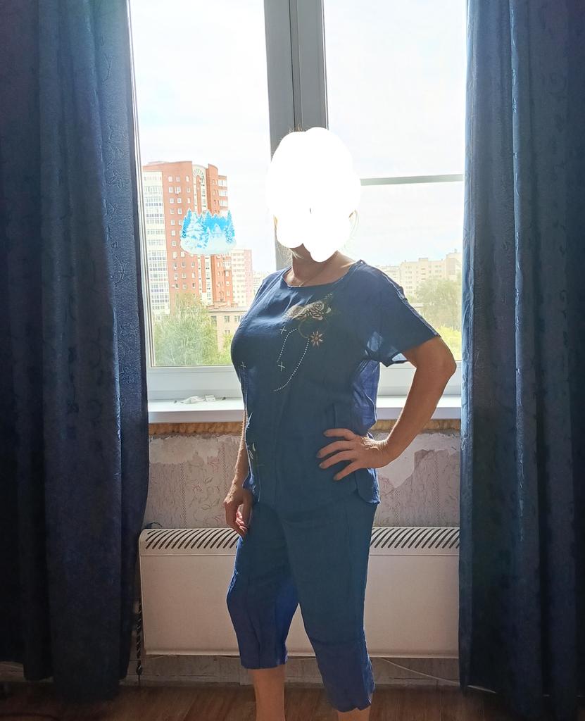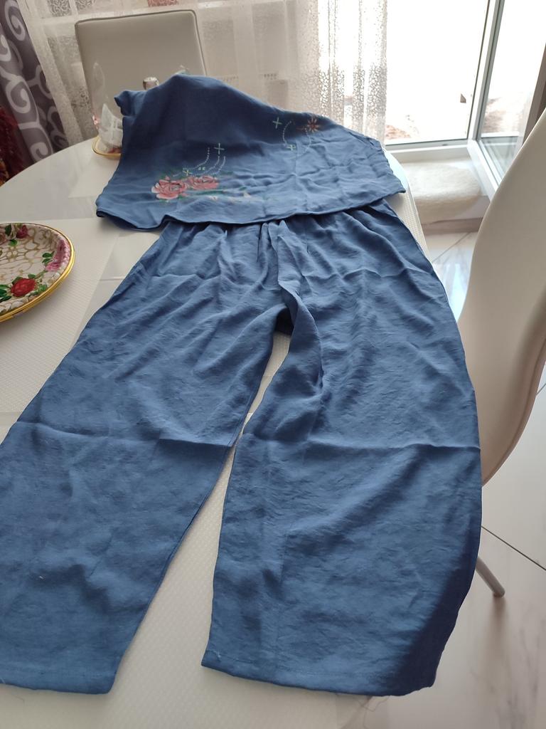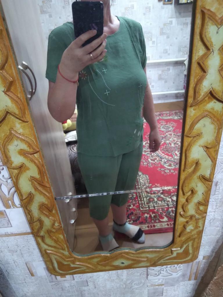 I received the order together with others, which is very good 👍. The suit is true to size. The quality is good! It will be good for summer! Linen for the heat, the fabric is what you need 👍 I want to order it for my mother too!