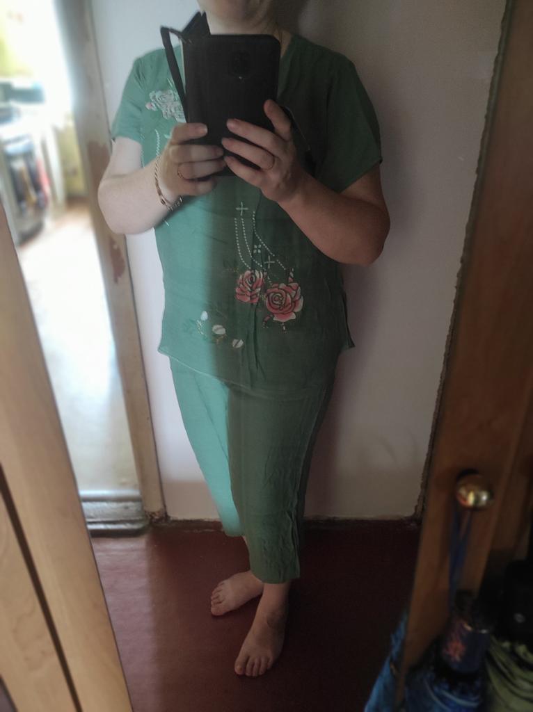 Great pajamas. When I ordered 46-48 size 4xl after reading the reviews, I had doubts. I was worried that it would be very big. But the blouse is loose, not critical, and the trousers are just right, smaller ones are not needed. I really liked the fabric, thin, see-through, but so pleasant.