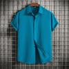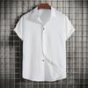 Summer Cotton Linen Shirt for Men's Lapel Loose Solid Color Hide Button Up Short Sleeve Shirts