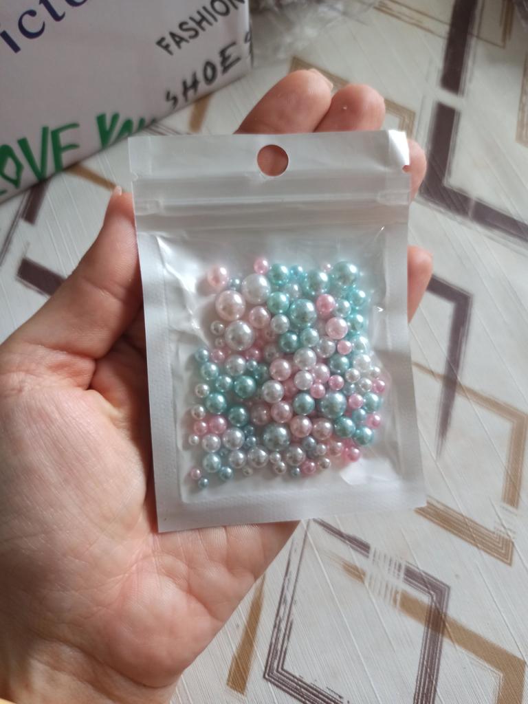 A lot of small beads, 2 mm each. And it doesn't seem like 200 pieces. The package says 10 grams. I didn't count them, because many are the size of seed beads. They don't look like that in the photo at all. It turns out the beads are without holes, and what to use them for now?