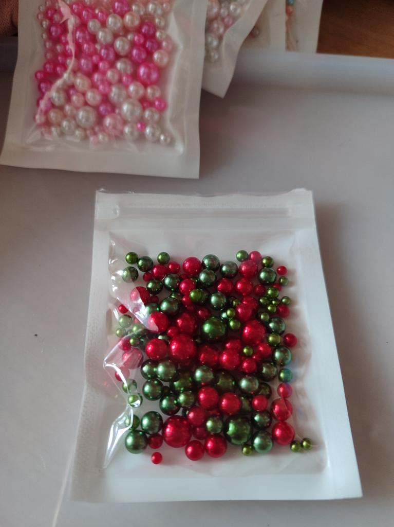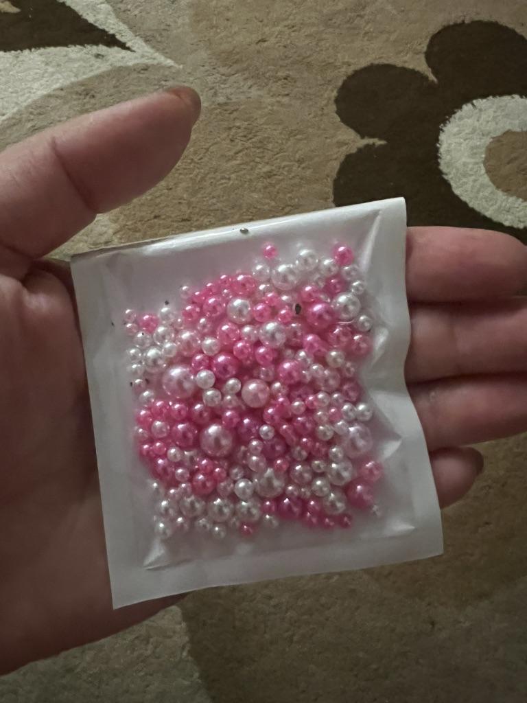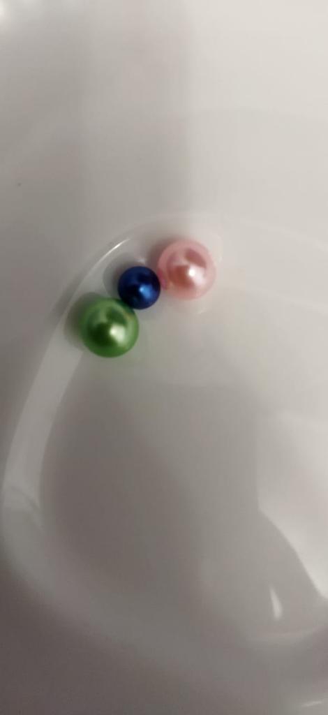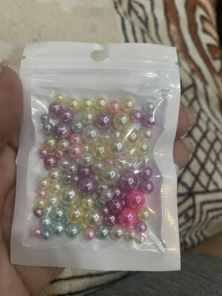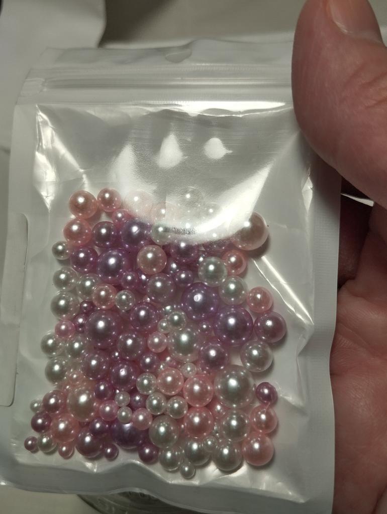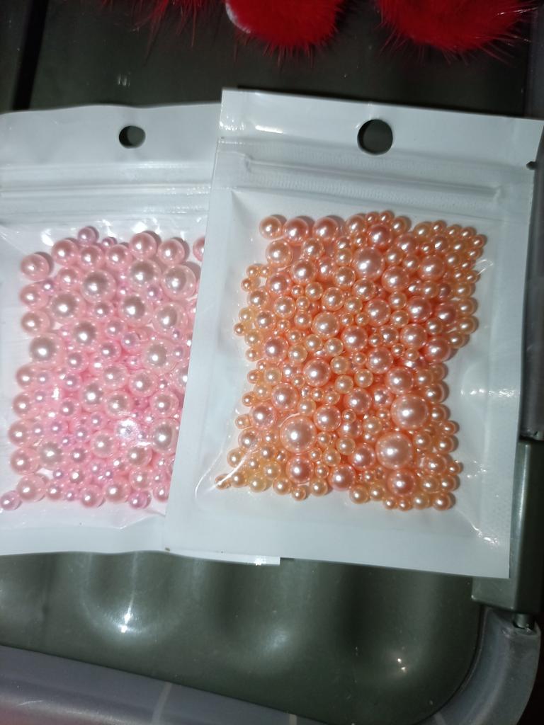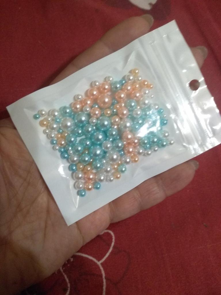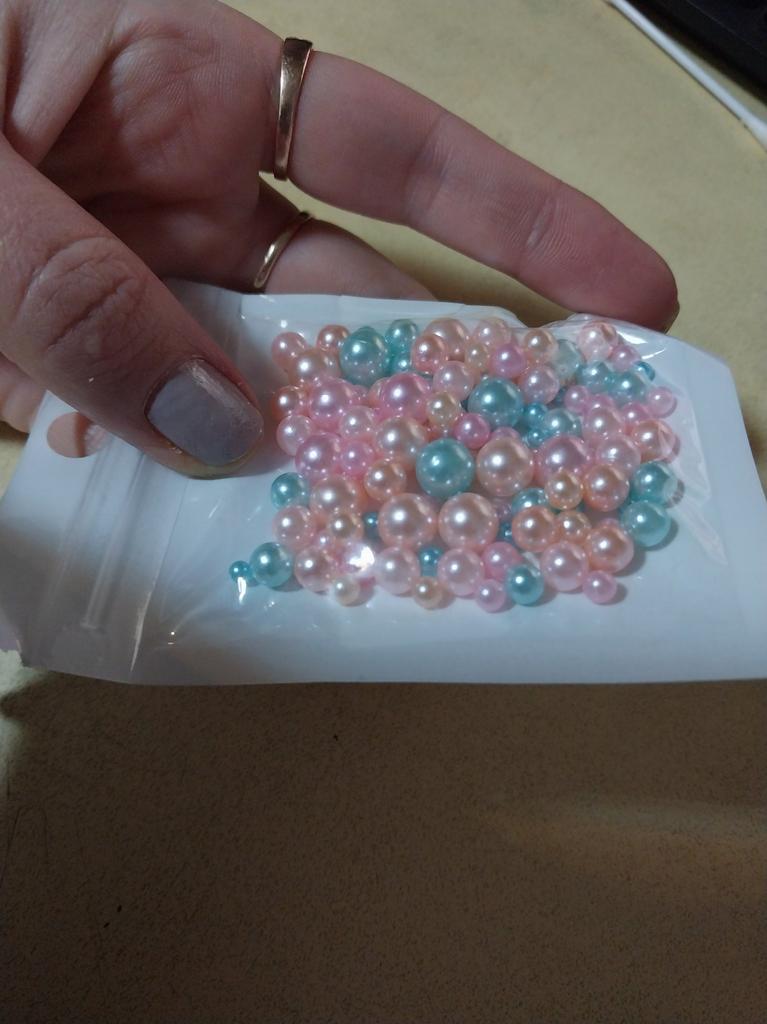 THESE ARE NOT BEADS!!! A bead is a small decorative object that comes in a variety of shapes and sizes from materials such as stone, bone, shell, glass, plastic, wood or pearl, and has a small hole through which a string or cord can be threaded.. !!!!! THESE ARE BALLS! - without holes. Beautiful color. USELESS MATERIAL FOR ME. I took it to make jewelry, but it turns out that you can only attach them with glue.. The set fits in the palm of your hand. 5 stars - this color is the cutest and the price is reasonable.