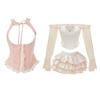 2024 Spring Sweet 3 Piece Set Women Party Sexy Y2k Crop Top + Office Lady Casual Mini Skirt + Elegant Slim Vest Korean Fashion