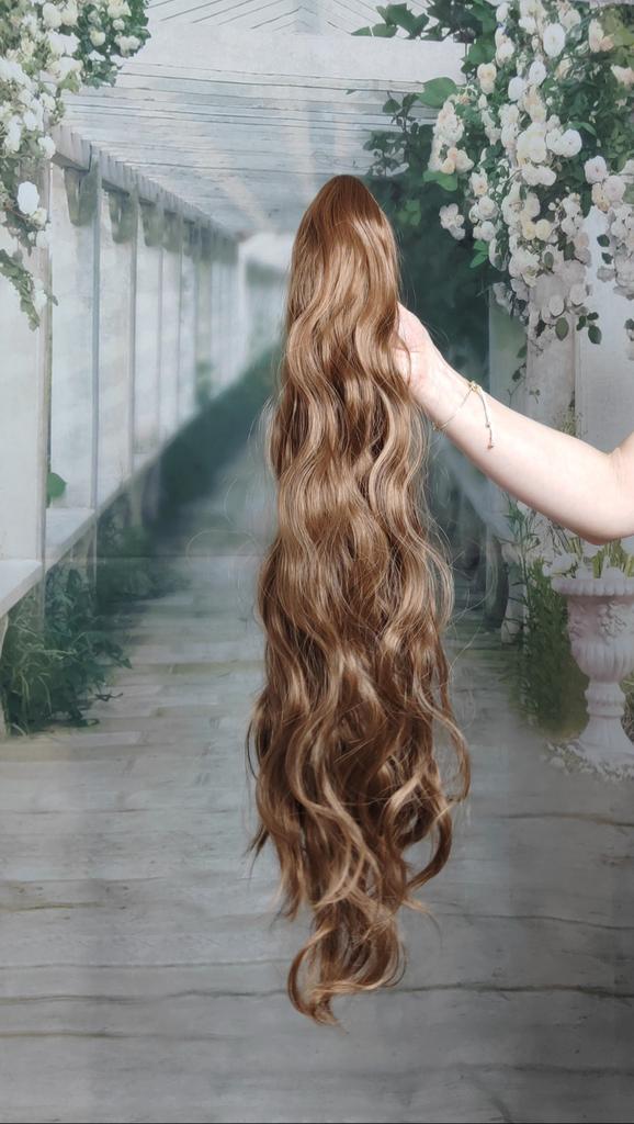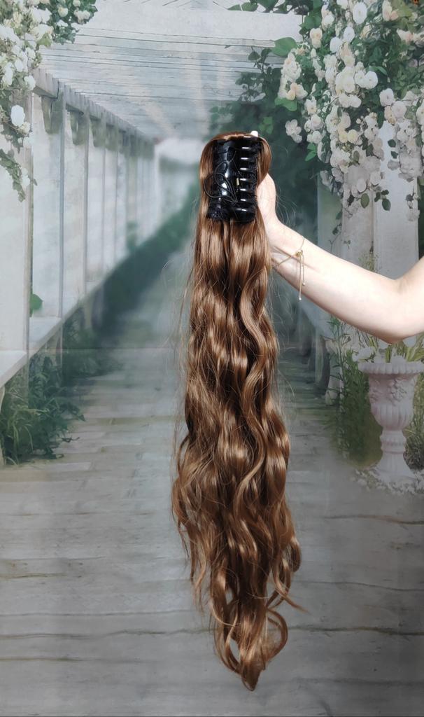 XINRAN Synthetic Long Wavy Ponytail Hair Extensions Claw Clip In Pony Tail Natural Black Wig For Women Cosplay Wear
