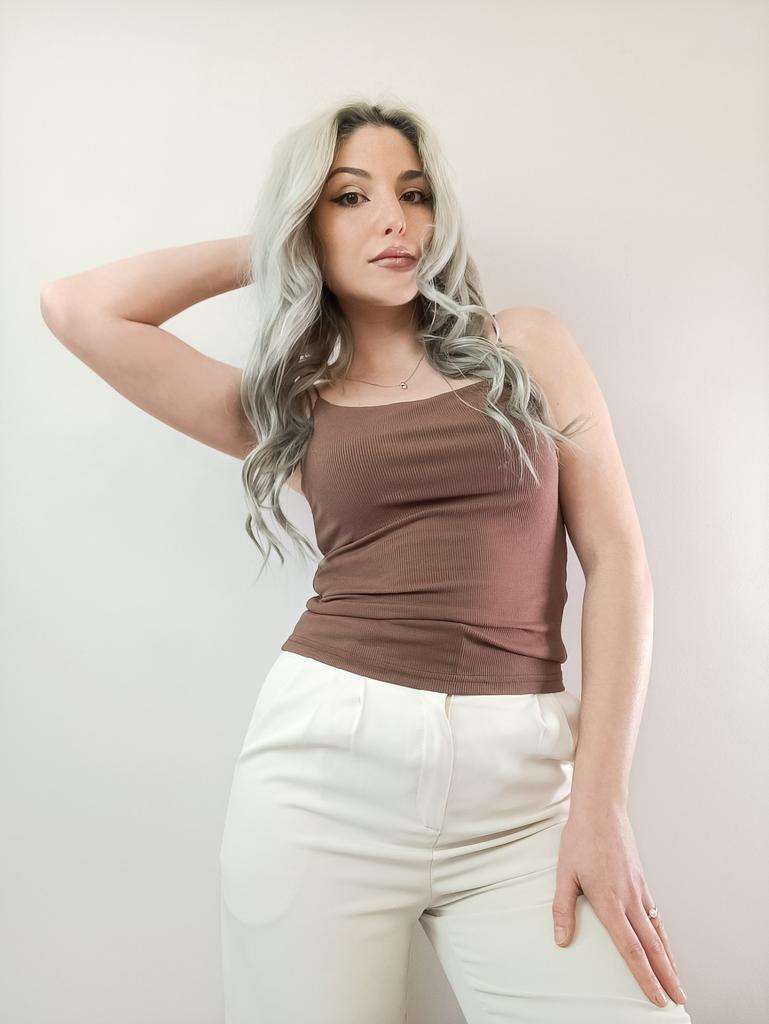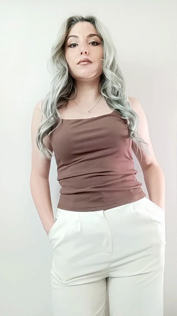 * Basic Spaghetti- Top * ๐ฅ๐๐ถ๐ฒ๐ณ๐ฒ๐ฟ๐๐ฒ๐ถ๐ 17 days ๐ฅ๐๐ถ๐ฒ๐ณ๐ฒ๐ฟ๐๐บ๐ณ๐ฎ๐ป๐ด The scope of delivery includes 1 top in the corresponding color and size. It is available in 4 different colors (brown, black, cream or white) in sizes S to XL. I ordered it in S in white. I wear size 36 to 38. I weigh 62 kg over 172 cm. Cup size 75D. The top fits me well because it is very stretchy. ๐ฅ๐ค๐๐ฎ๐น๐ถ๐รค๐ The top is actually opaque, there are double layers in the chest area, but EVERYTHING stands out because of it! ๐ณ I think the top is classic but sophisticated... it doesn't slip off the shoulder. The neckline at the front is really great. ๐คฉ It has a nice fit. The color is like in the pictures. I particularly like the ribbed look and the spaghetti straps. For material composition : 92%Rayon (Cotton) 8%SPANDEX What feels very soft and high-quality on the skin. ๐ฅ๐๐ฎ๐๐ถ๐ Extremely beautiful top with great spaghetti straps and a ribbed look that has a very nice fit... that adapts perfectly to the figure. ....but the disadvantage is that everything is visible (see photos and video).. You can order the top in its original size. It runs true to size and is very stretchy.