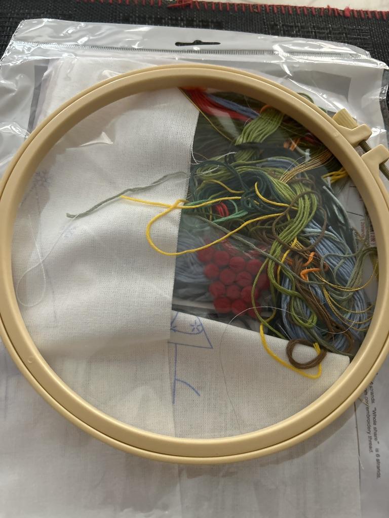 It is a complete kit to embroider and put as a painting, it has: picture frame 🖼️, embroidery hoop, 🧵 threads, needles 🪡, marked fabric, beads. It took a month to arrive in Spain 🇪🇸 Thanks Joom. I'll post a photo when I finish it