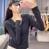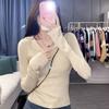Slim Fit Pink Long Sleeved Knitted Sweater for Women Slimming Solid Color Pullover Top