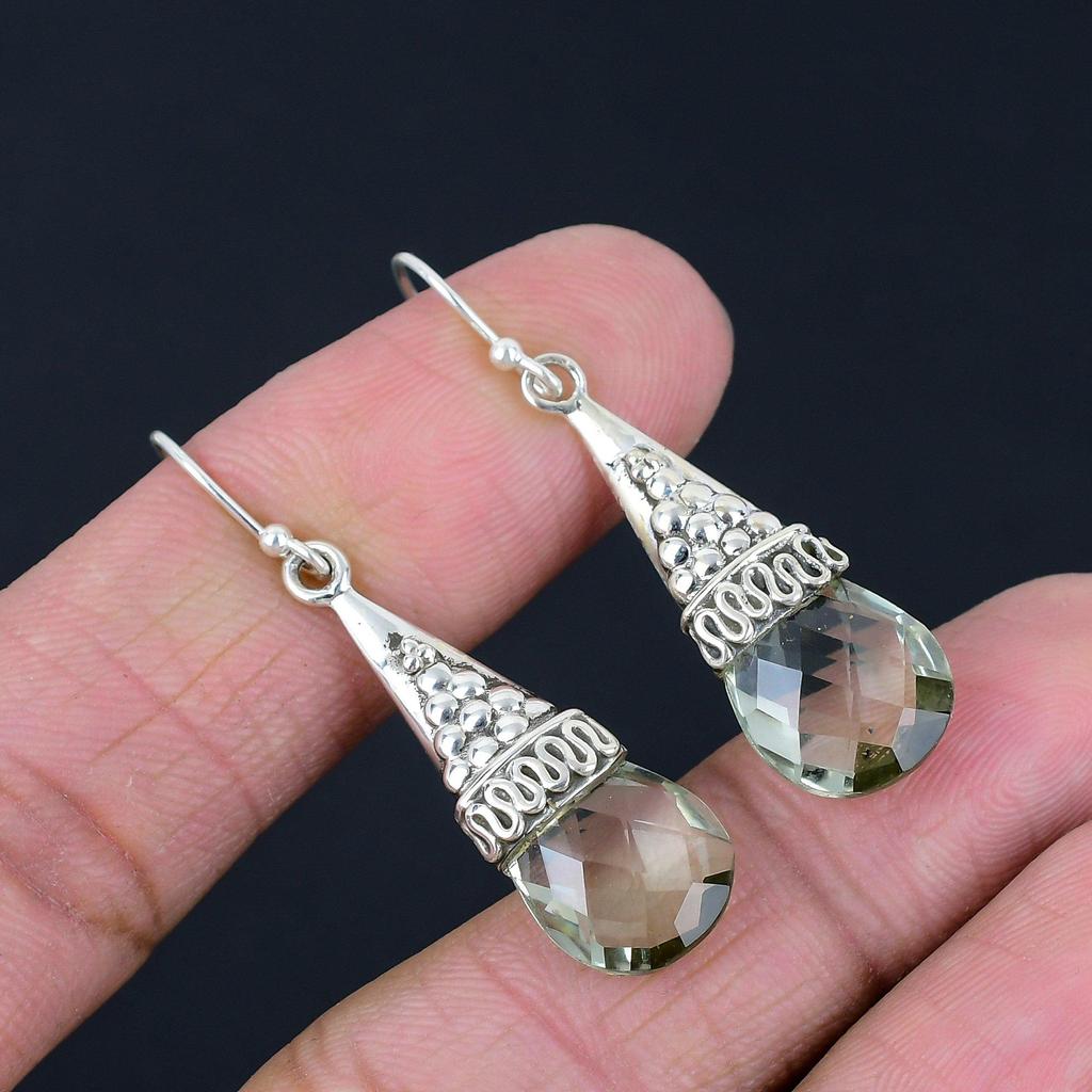 Handmade Green Amethyst Gemstone Silver Earrings
