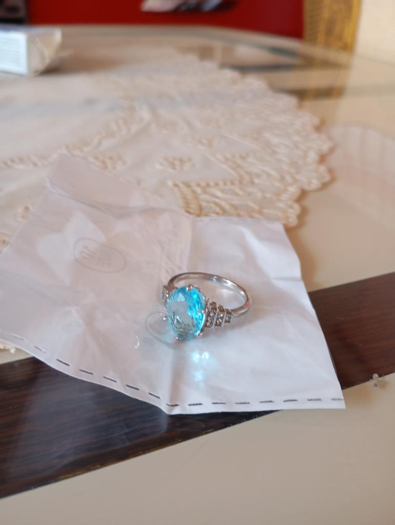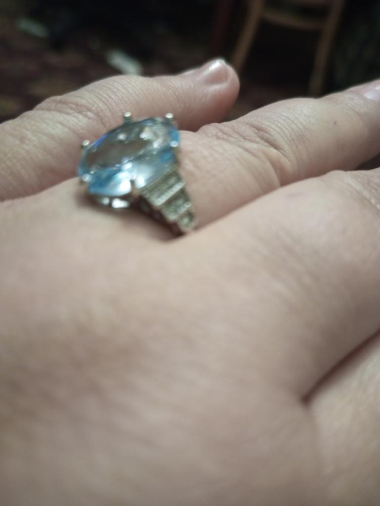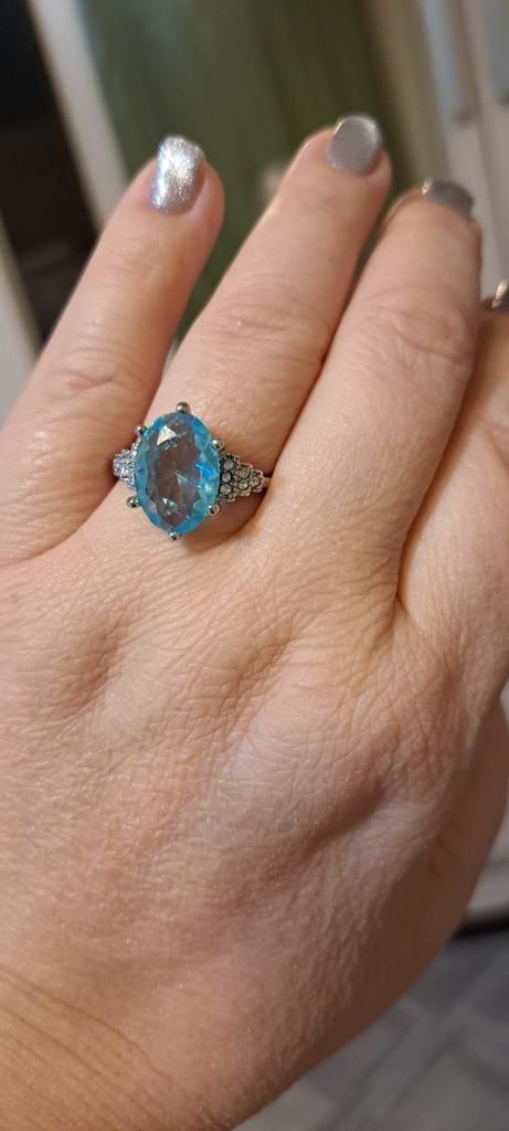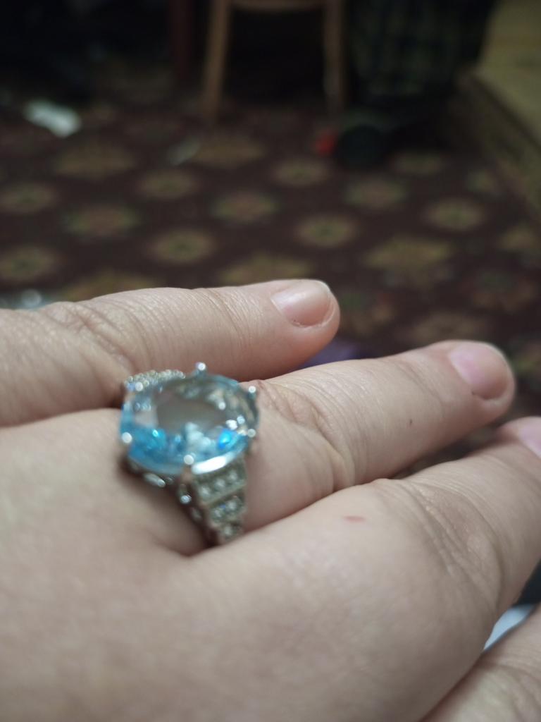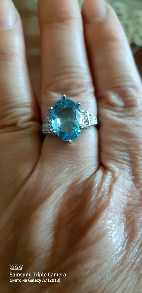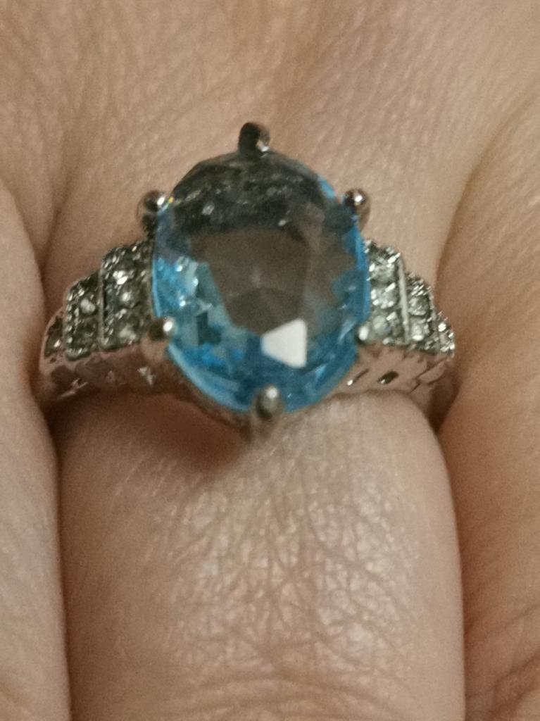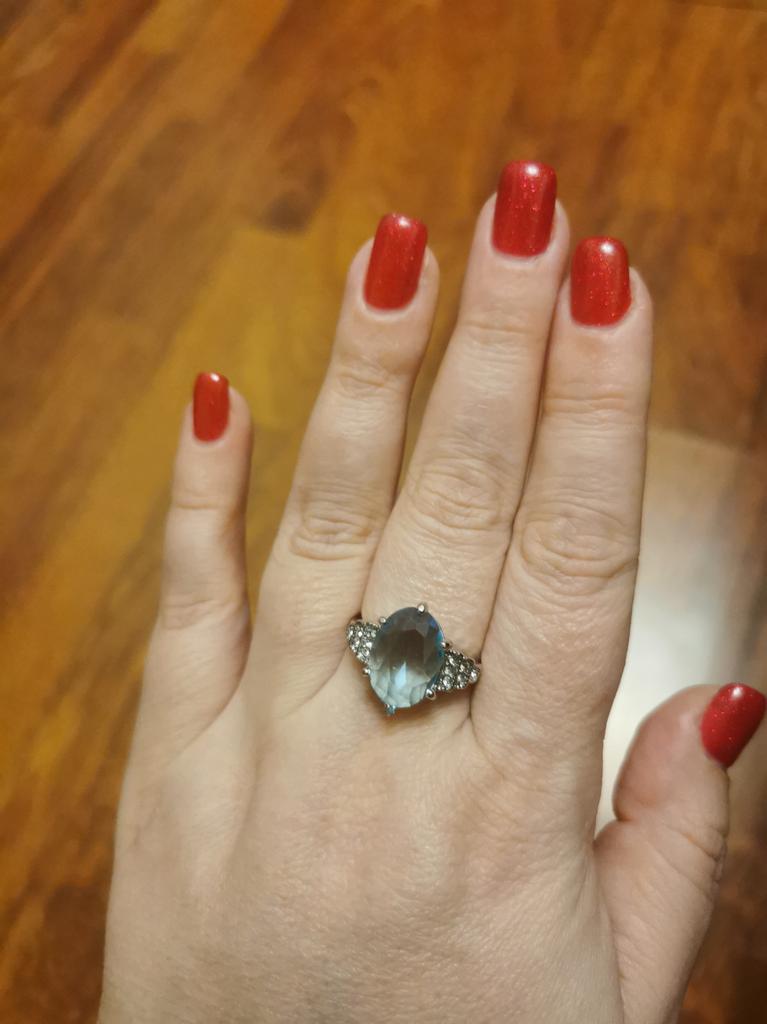 The ring is fashionable, blue topaz. Thank you.
