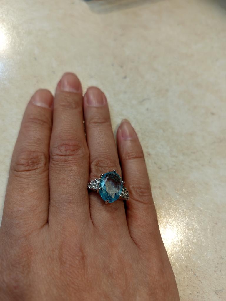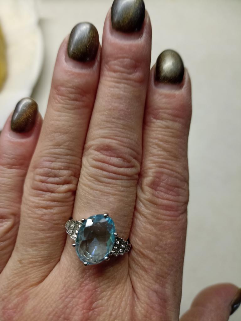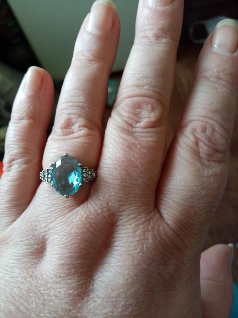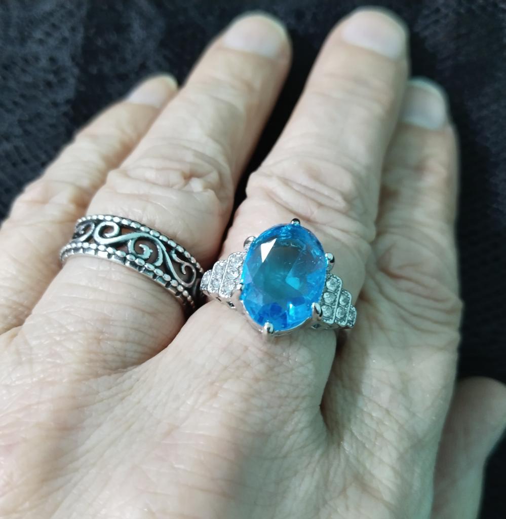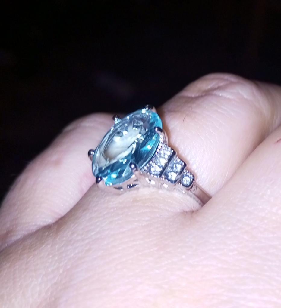 The ring is fashionable, blue topaz. Thank you.