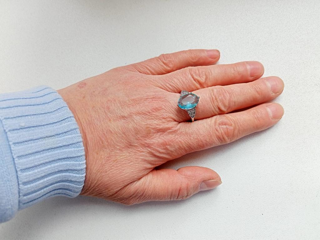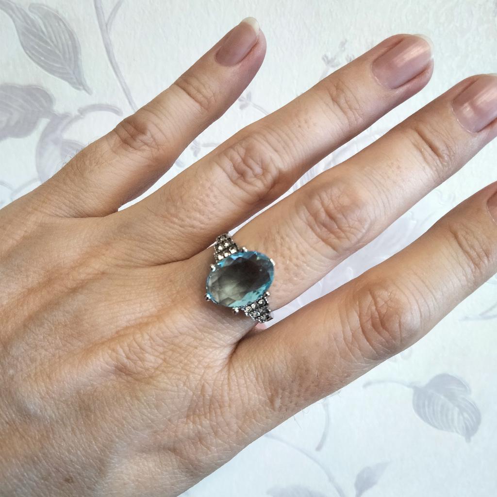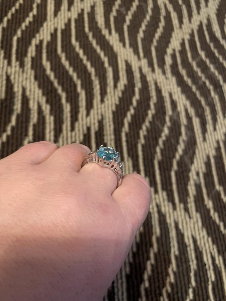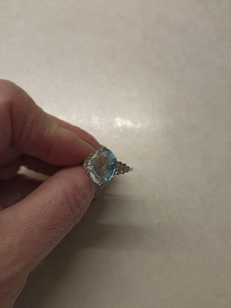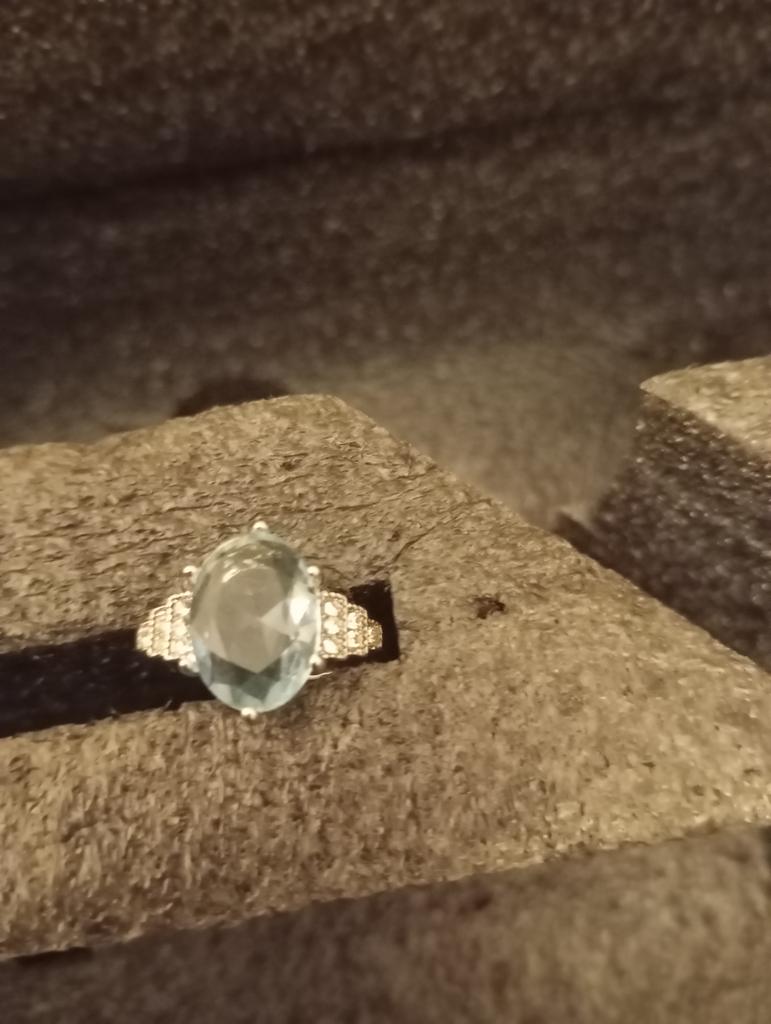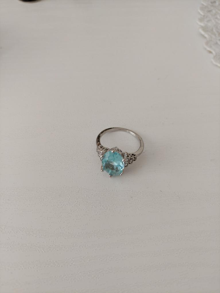 The ring is fashionable, blue topaz. Thank you.
