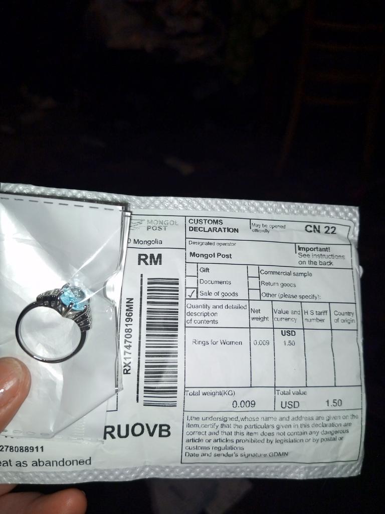 I received the order. The ring is not like the one in the photo, but it is also not bad. The size is right.