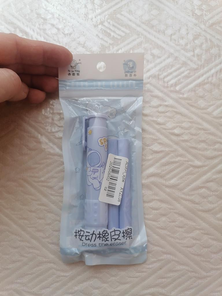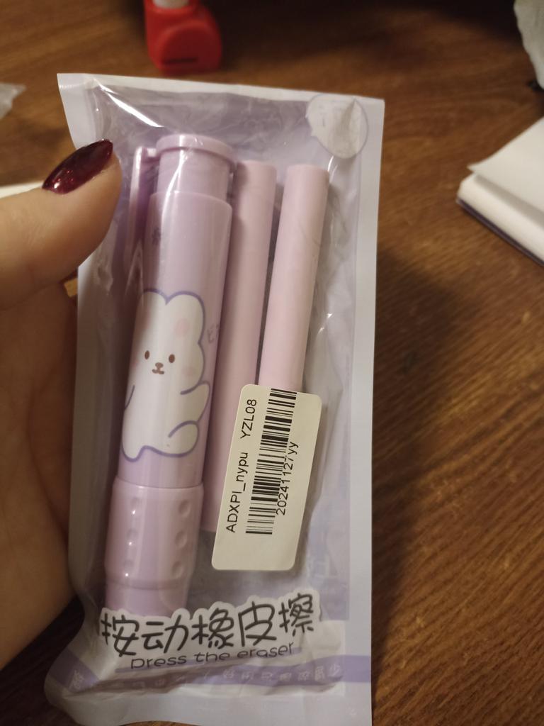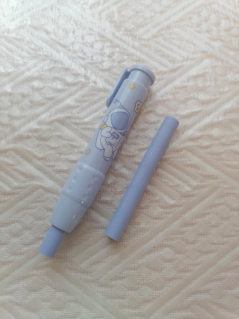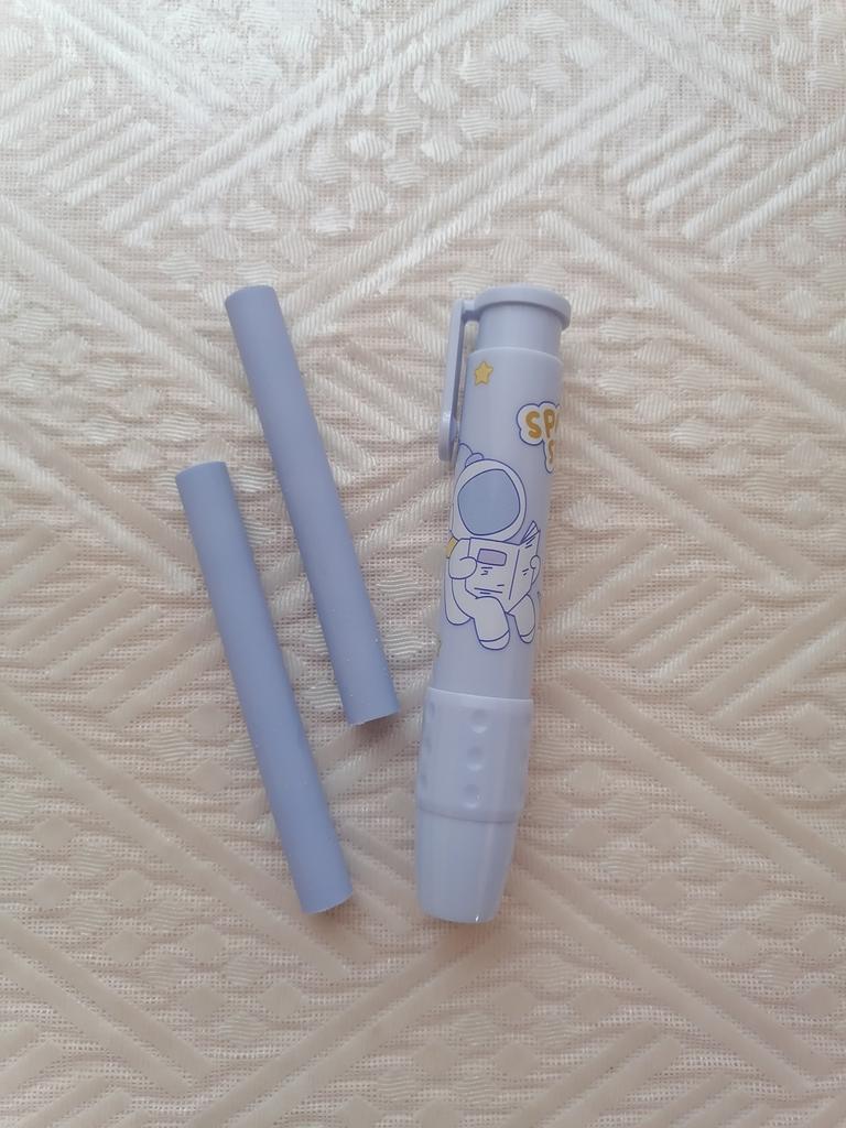 A good eraser in the shape of a pen with two spare rods. The eraser itself is soft, I recommend it.