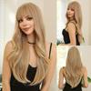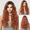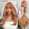 LOUIS FEREE Long Wavy Wig With Bangs Red Brown Ginger Copper Synthetic Wigs for Women Natural Wave Curly Wigs Heat Resistant Hair for Daily