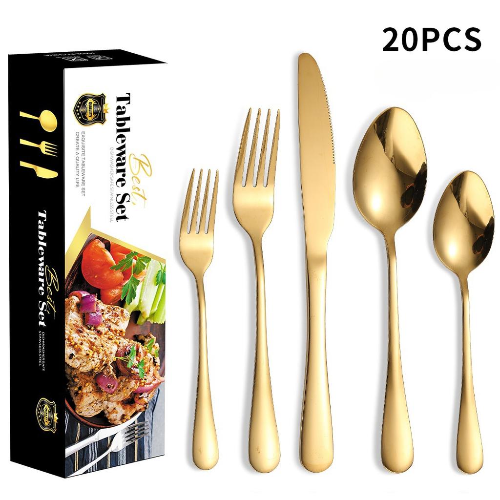 Stainless Steel Tableware Suit Steak Knife, Fork and Spoon Five Main Pieces Stainless Steel Tableware 20 Pieces Suit