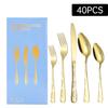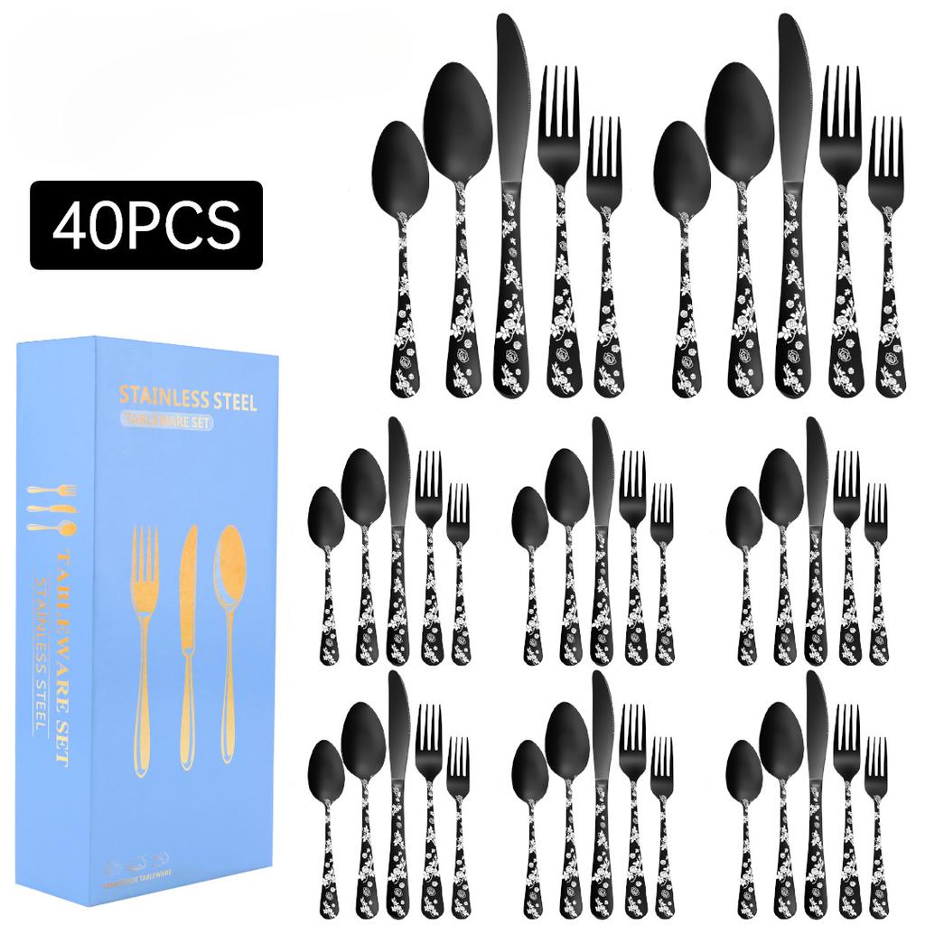 New Pattern Stainless Steel Tableware 40 Pieces Suit PVD Plated Printed Black Carved Handle Laser