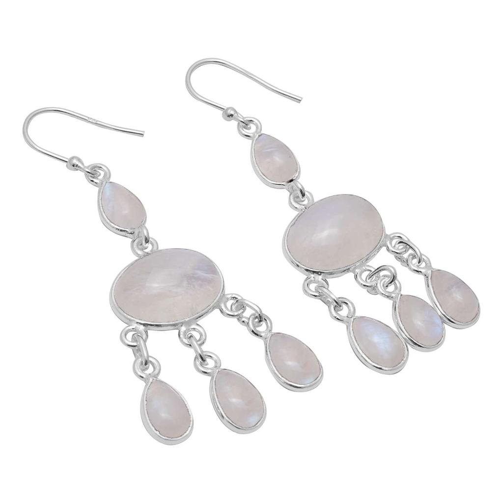 Rainbow Moonstone Gemstone Earrings Solid 925 Sterling Silver Handmade Earrings Jewelry Gift For Women And Girls E-2292