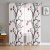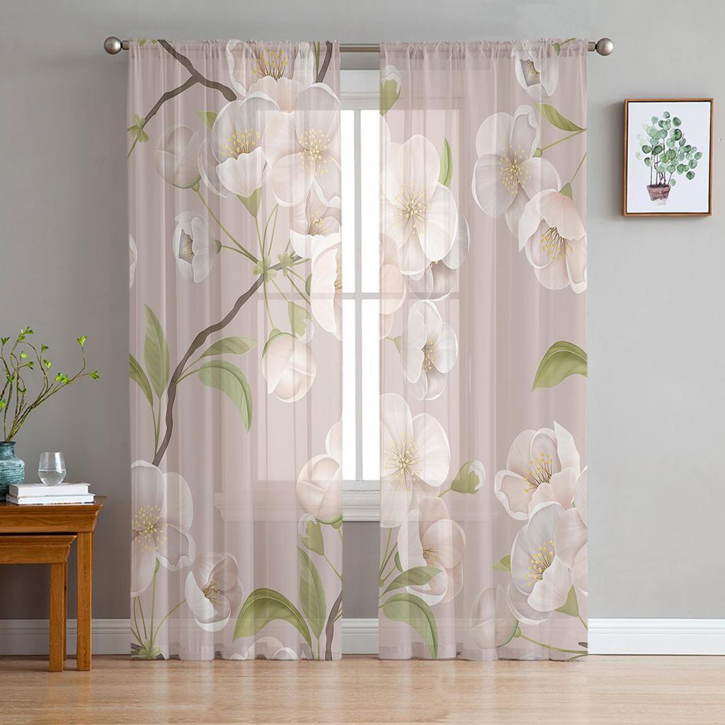 Spring Brown Background Peach Blossom Tulle Curtains For Living Room Home Decor Window Curtain Kitchen Sheer Voile Curtain