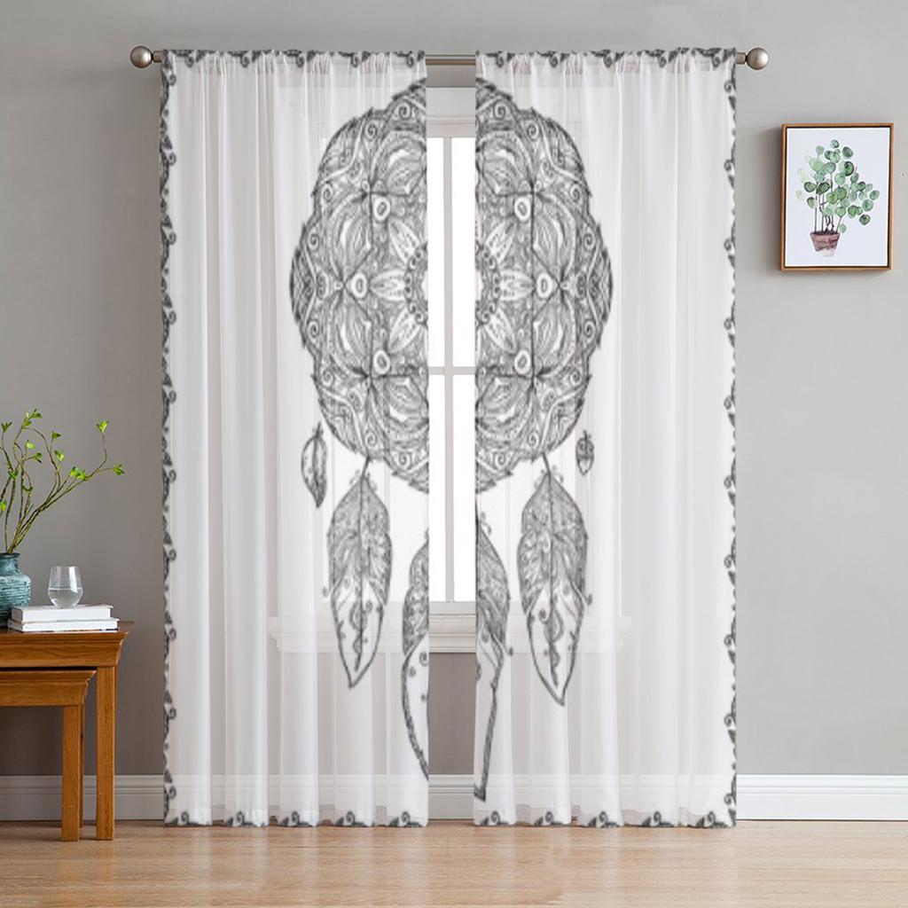 Black And White Dreamcatcher Sheer Curtain For Living Room Modern Voile Tulle Window Curtains For Bedroom Kitchen Drapes