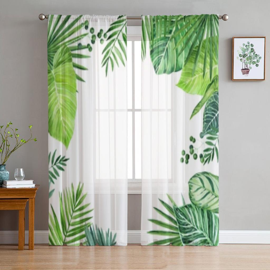 Watercolor Of Tropical Leaves Chiffon Sheer Curtains For Living Room Bedroom Decoration Window Tulle Curtains Drapes