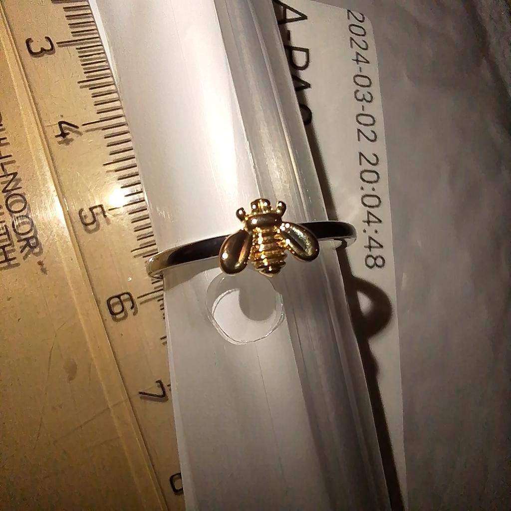 Very cute ring. 🔥👍 A small, meticulously detailed fly or bee, made of yellow metal on a ring of white metal.