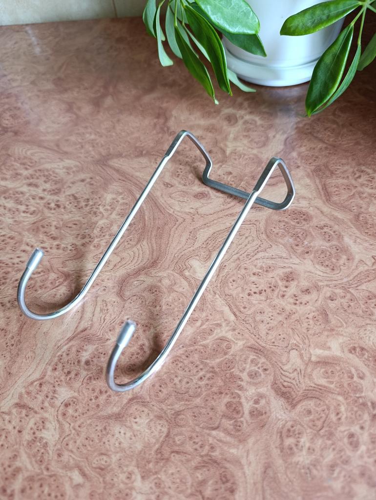 S-shaped hook-hanger is a versatile solution for any interior, it easily combines with different styles and colors of furniture. Double over-the-door hook is an indispensable accessory in everyday life, suitable for various purposes, especially when there is not enough space for storing clothes or towels. This hook is made of stainless steel, which guarantees its durability and resistance to moisture, scratches, and loads. Thanks to its shape, it hangs perfectly on cabinet or cupboard doors without the need for drilling, glue, or tools. It installs in seconds and is immediately ready for use.. The double construction of the hanger ensures multifunctionality, you can place towels and kitchen potholders simultaneously, or several necessary accessories that are always needed at hand. The compactness of the hook makes it a versatile solution for the bathroom, kitchen, wardrobe, or even the study. Its smooth surface does not damage items, and the smooth lines of the design add aesthetic appeal. An ideal helper for space organization! Features: - Double S-shaped hook for hanging on cabinet doors, installs without drilling. - Made of stainless steel, provides excellent corrosion resistance and durability. - Suitable for kitchen, bathroom, wardrobe, bedroom, providing more storage space. - Ideal for hanging kitchen utensils, towels, clothes, keys and other items. Characteristics: Type: over-the-door hook. Material: stainless steel. Mounting type: slip-on without fastening. Size: 6x5.7x2.7 cm.