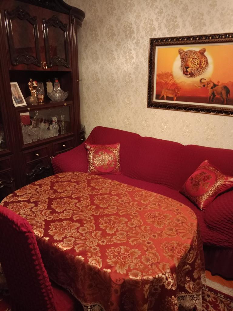 Dark burgundy tablecloth,