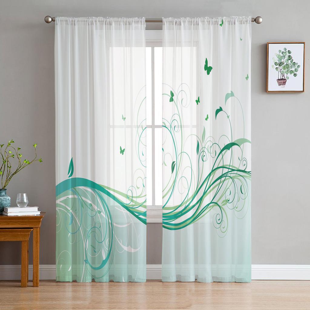 Branch Leaf Butterfly Abstract Art Tulle Curtains For Living Room Home Decor Window Curtain Kitchen Sheer Voile Curtain