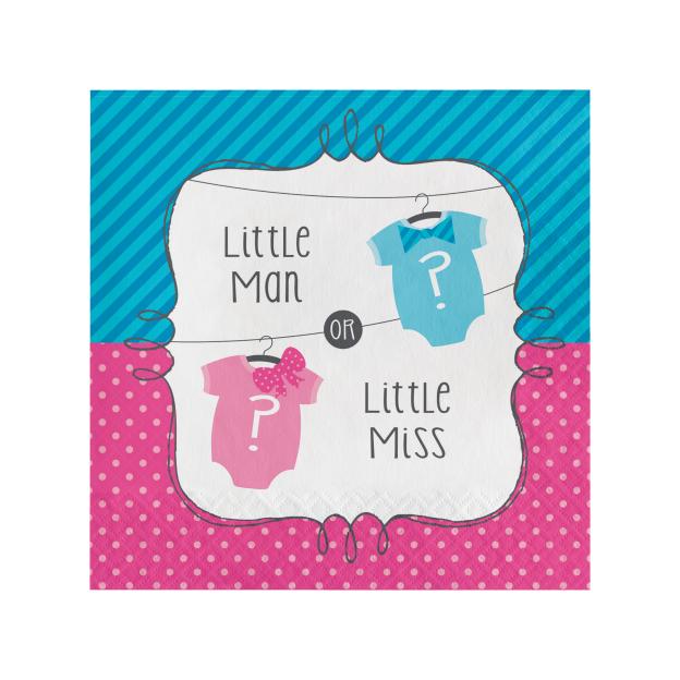 Creative Party Little Miss Little Man Gender Reveal Disposable Napkins (Pack of 16)