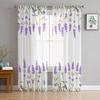 Purple Flower Lavender Romance Tulle Curtains For Living Room Decoration Modern Chiffon Sheer Voile Kitchen Curtain