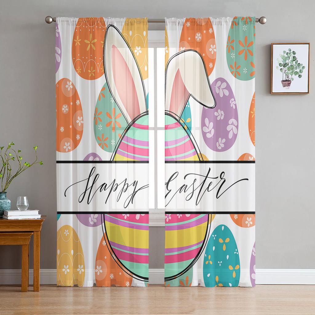 Easter Egg Texture Rabbit Ears Tulle Curtains For Living Room Bedroom Voile Sheer Curtain Window Home Decor Drapes