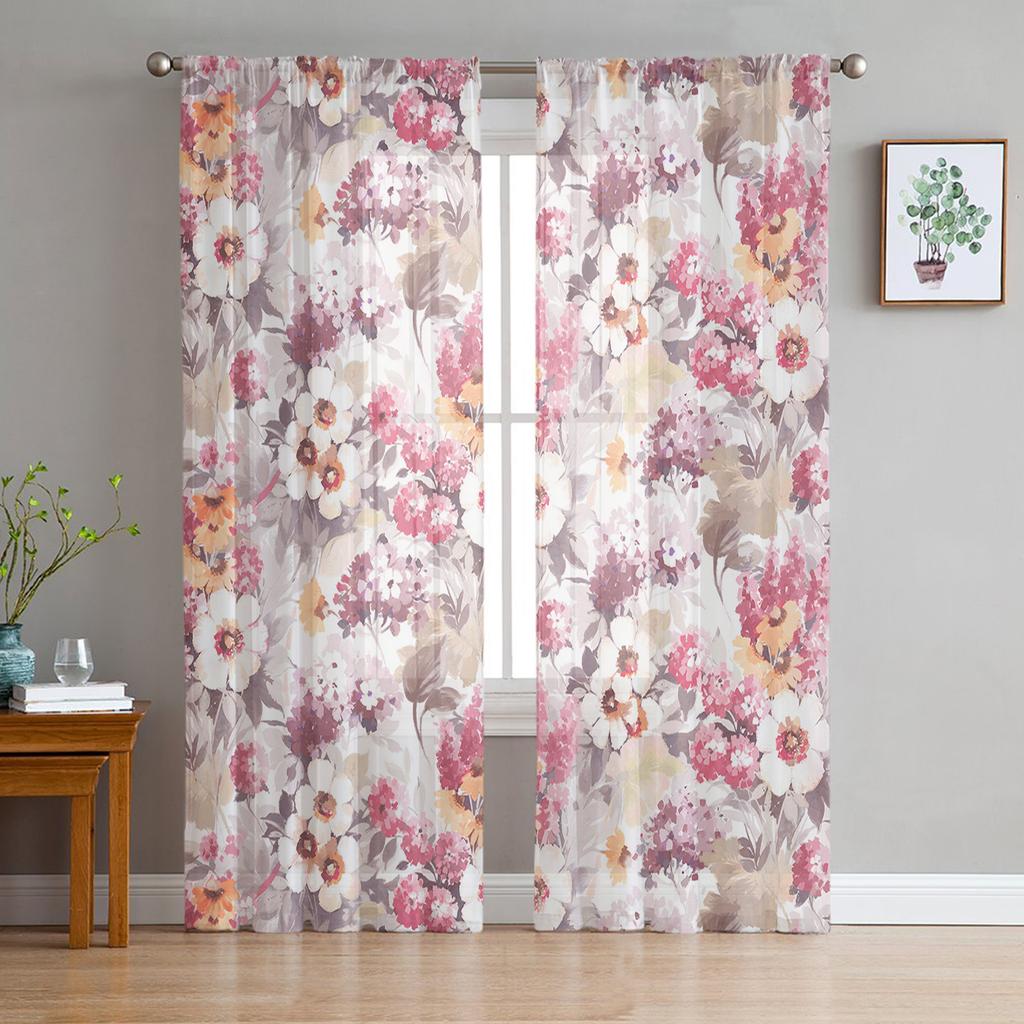 Spring Texture Watercolor Flower Hydrangea Tulle Curtains For Living Room Kitchen Sheer Voile Curtain Bedroom Window Panels