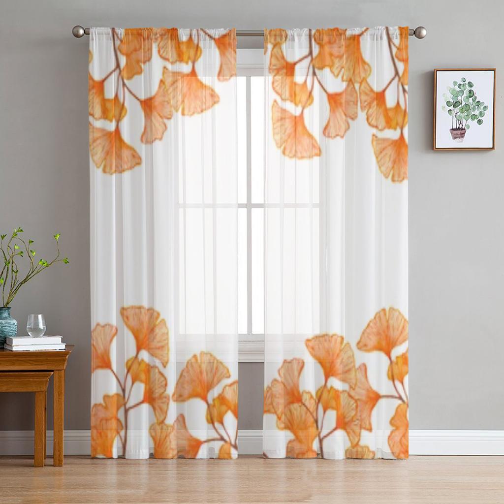 Leaves Of Ginkgo Sheer Window Curtains For Living Room Bedroom Modern Voile Tulle Curtains Fabric Drapes For Kitchen