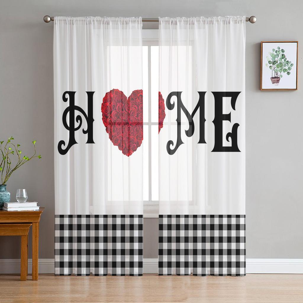 Valentine 'S Day Rose Heart Plaid Tulle Curtains For Living Room Kitchen Sheer Voile Curtain Bedroom Window Panels