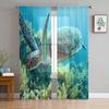 Blue Ocean Green Turtle Tulle Curtains For Bedroom Modern Voile Curtains Home Decoration Window Curtains