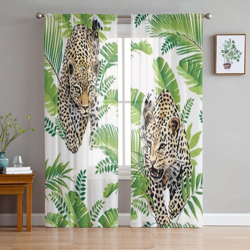 Leopard Palm Leaves Sheer Window Curtains For Living Room Bedroom Modern Voile Tulle Curtains Fabric Drapes For Kitchen