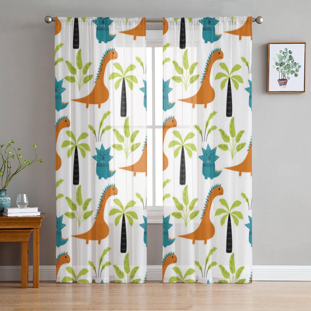 Dinosaur Cute Kids Tulle Curtains For Living Room Bedroom Christmas Chiffon Sheer Voile Kitchen Curtain