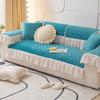 Quilted Ruffle Skirt Cover For Sofa Velvet Non -Slip Corner Couch Slipcover Armchair Towel Furniture Protector