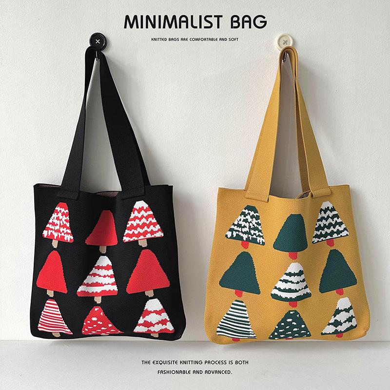 Creative Cartoon Christmas Tree Knitted Handbag Women Trend Large Capacity Student Bag Shoulder Bag