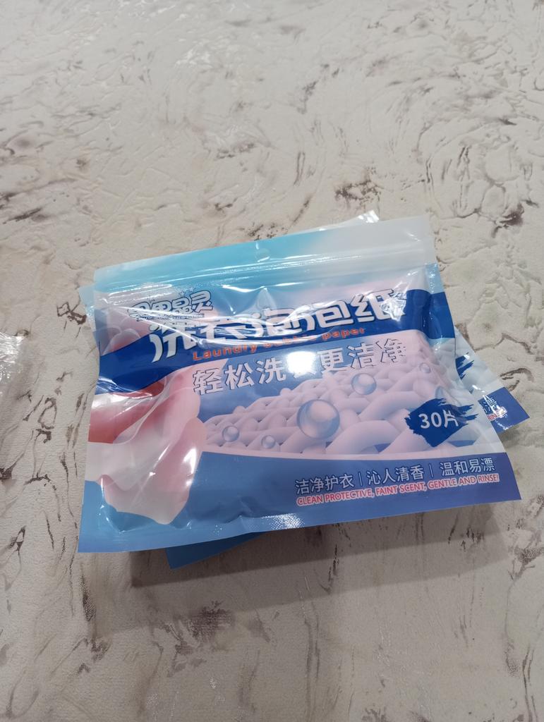 Laundry strips are good, the laundry gets washed, one strip if there is little laundry, two if there is a lot., such ones are on sale in the Fix Price store and you don't have to wait a month.