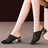 Crystal Half Slippers Female Thick Heels 2024 New Summer Fashion Outside Wear Medium Heel Mesh Cool Female Soft Baotou Sandals
