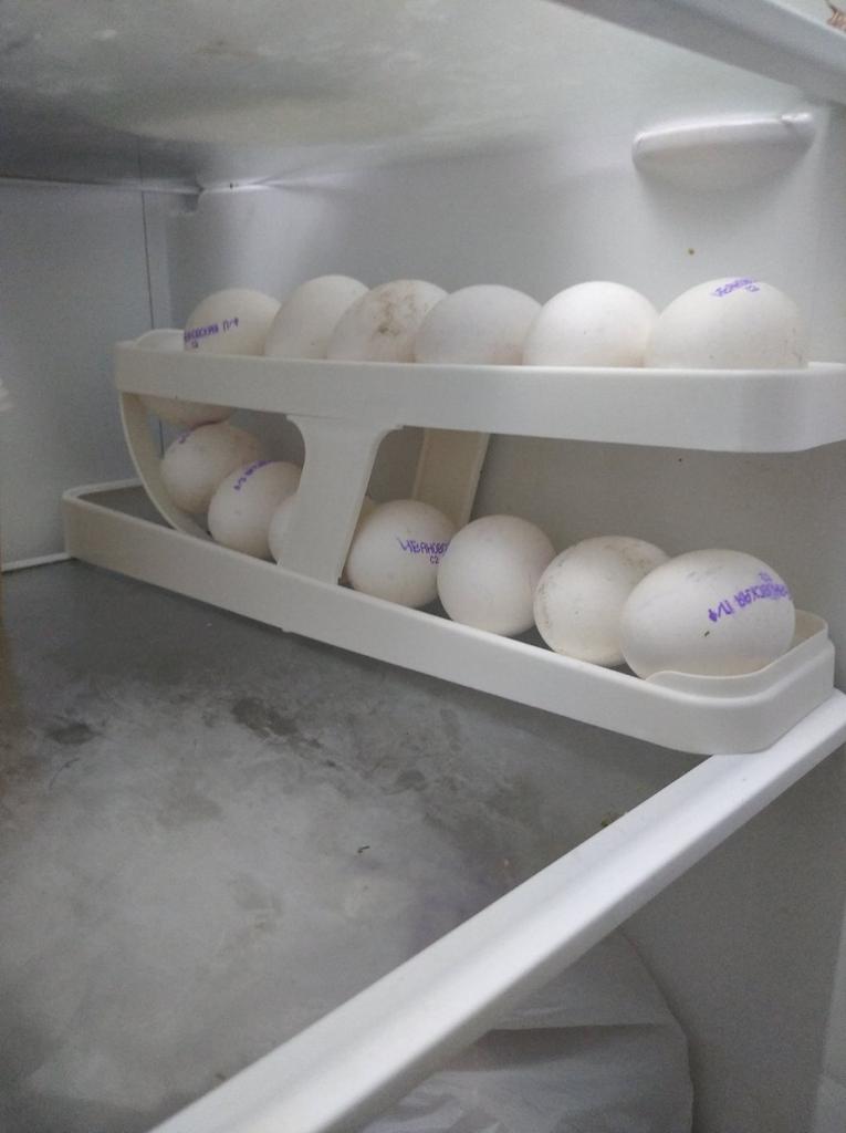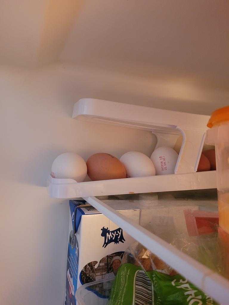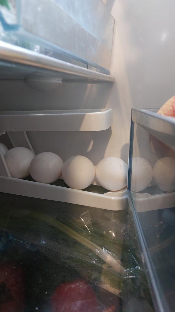 I assembled it, put it not in the door, but near the wall of the refrigerator, normal CO eggs. Everything is fine.