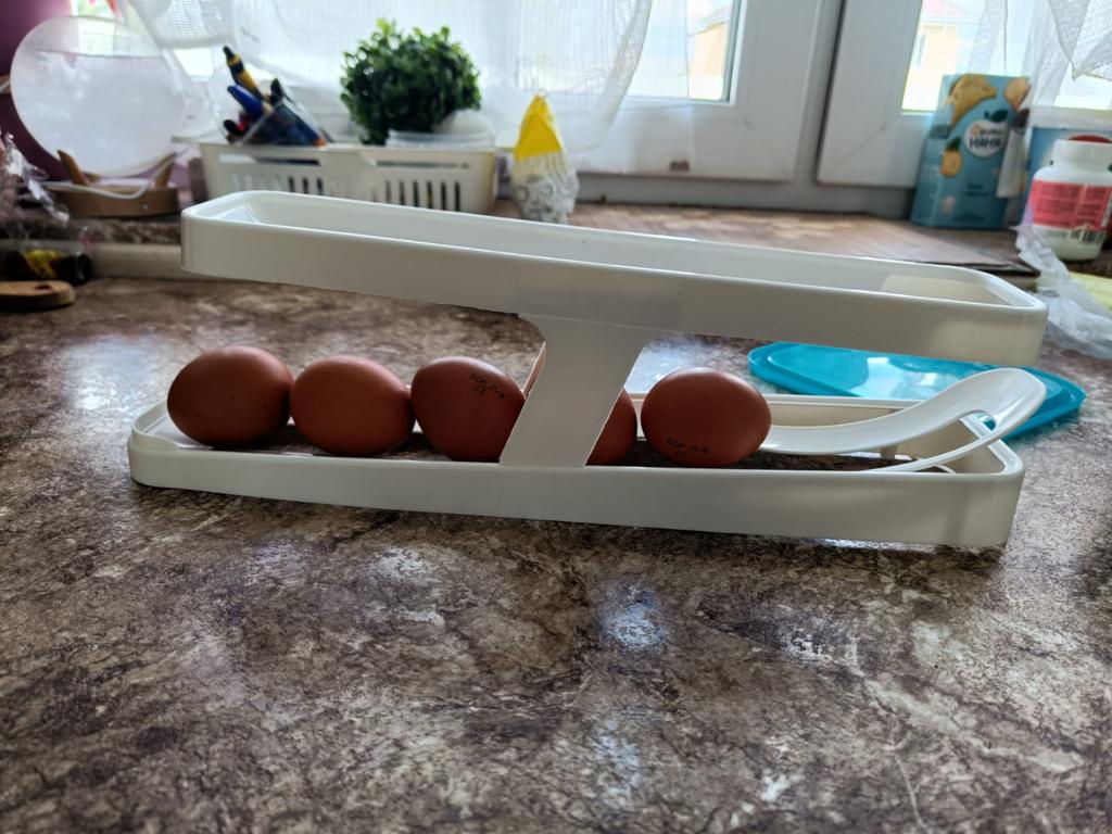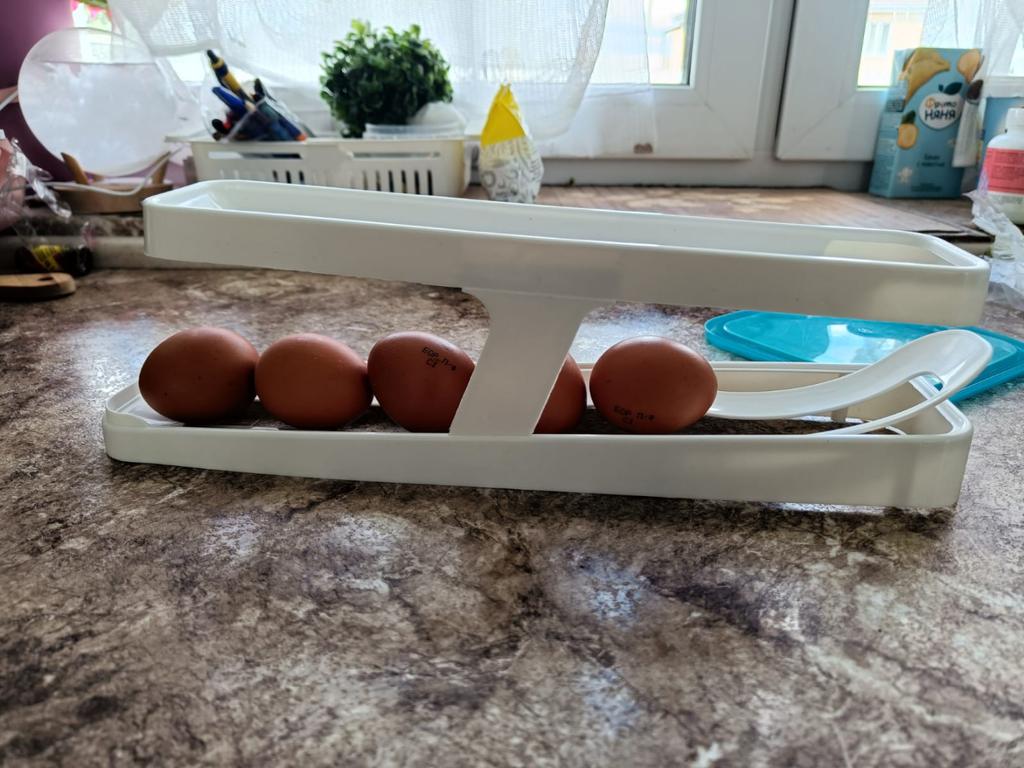 An interesting gadget, but it will be useful for those who have a deep refrigerator and who buy more than a dozen eggs. Unfortunately, it doesn't fit in my built-in refrigerator...