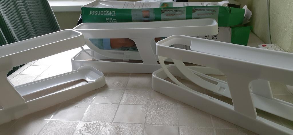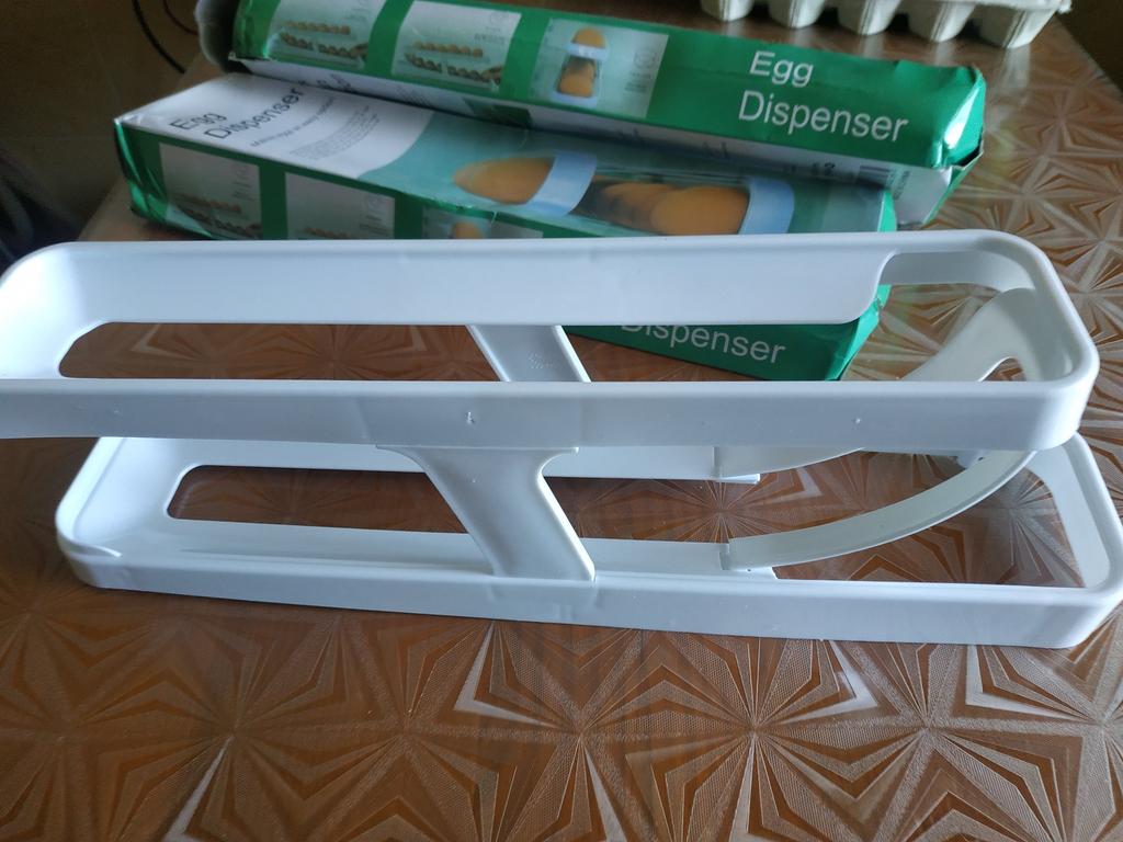 Thanks Joom. Indeed, it is assembled very simply and quickly. Holds 14 L size eggs. Freely stands on the shelf.