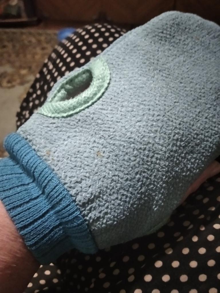 The glove is comfortable, I bought it to care for a bedridden patient. It is quite hard when wet, massages and cleanses the skin, and does its job well. I recommend buying it.