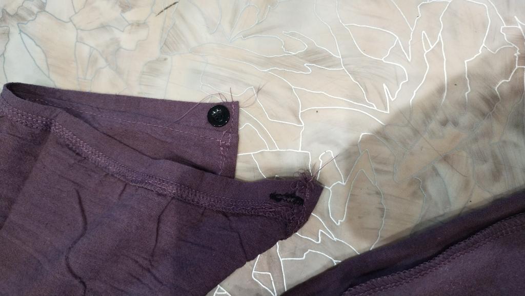 Nice blouse, the impression is spoiled by unfinished details and protruding threads.