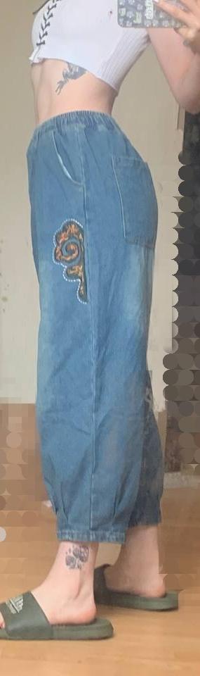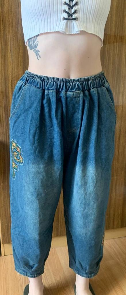 Denim Pants Women Fashion Embroidery Loose Jeans Female Autumn Plus Size Woman Harem Pants