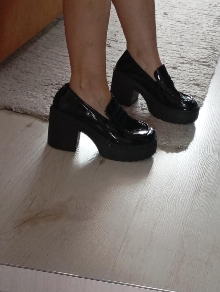 Pu Leather Women's Platform Loafers Gothic Black Chunky High Heels Pumps Woman Preppy Style Jk Uniform Shoes