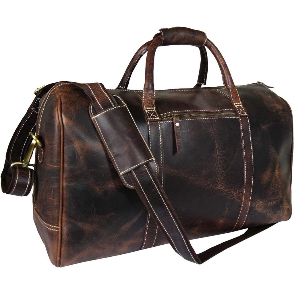 Leather Castle Genuine Vintage Buffalo Hide Leather Men’s Duffel Bag Sports Gym, Travel, Carry-on Air-cabin Luggage Handbag, Dark Brown