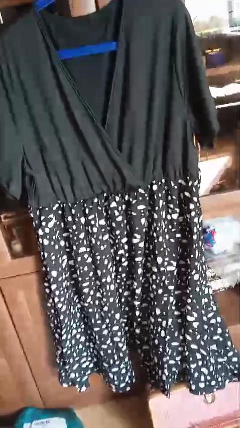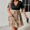 Summer Women's Dress Large Size Dresses Spliced V-neck Short Sleeve Strappy Pleated Dress