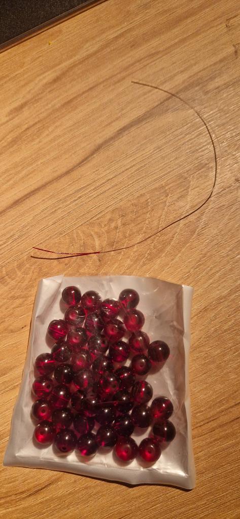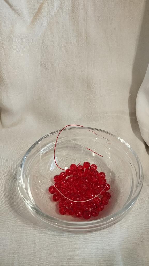I dream of buying real red glass beads. Not painted! I wonder if such things exist? There were only 60 pieces. Multiply by 5.4 mm. It comes out to a little more than 32 cm.